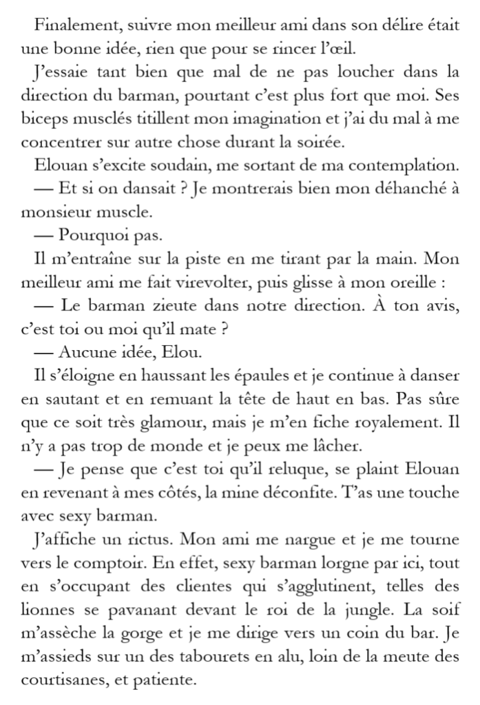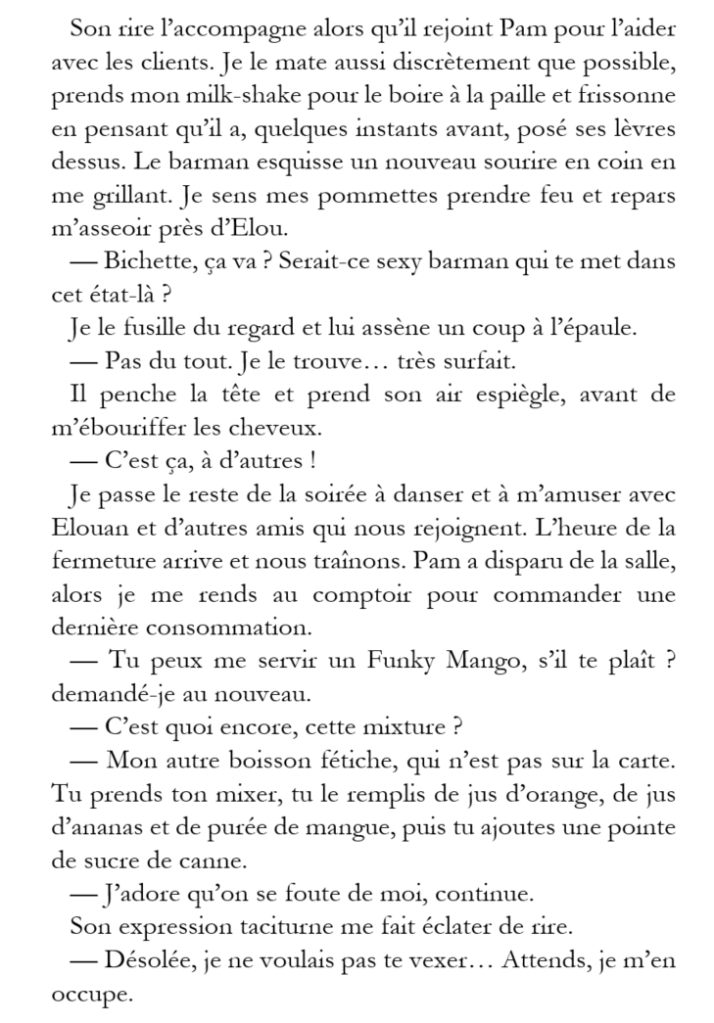 Voici l’extrait du début de la nouvelle Cocktail foudroyant, un coup de foudre qui monte en tension.