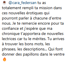« Un texte auquel on ne s’attend pas pour la Saint-Valentin, original et bien écrit. »